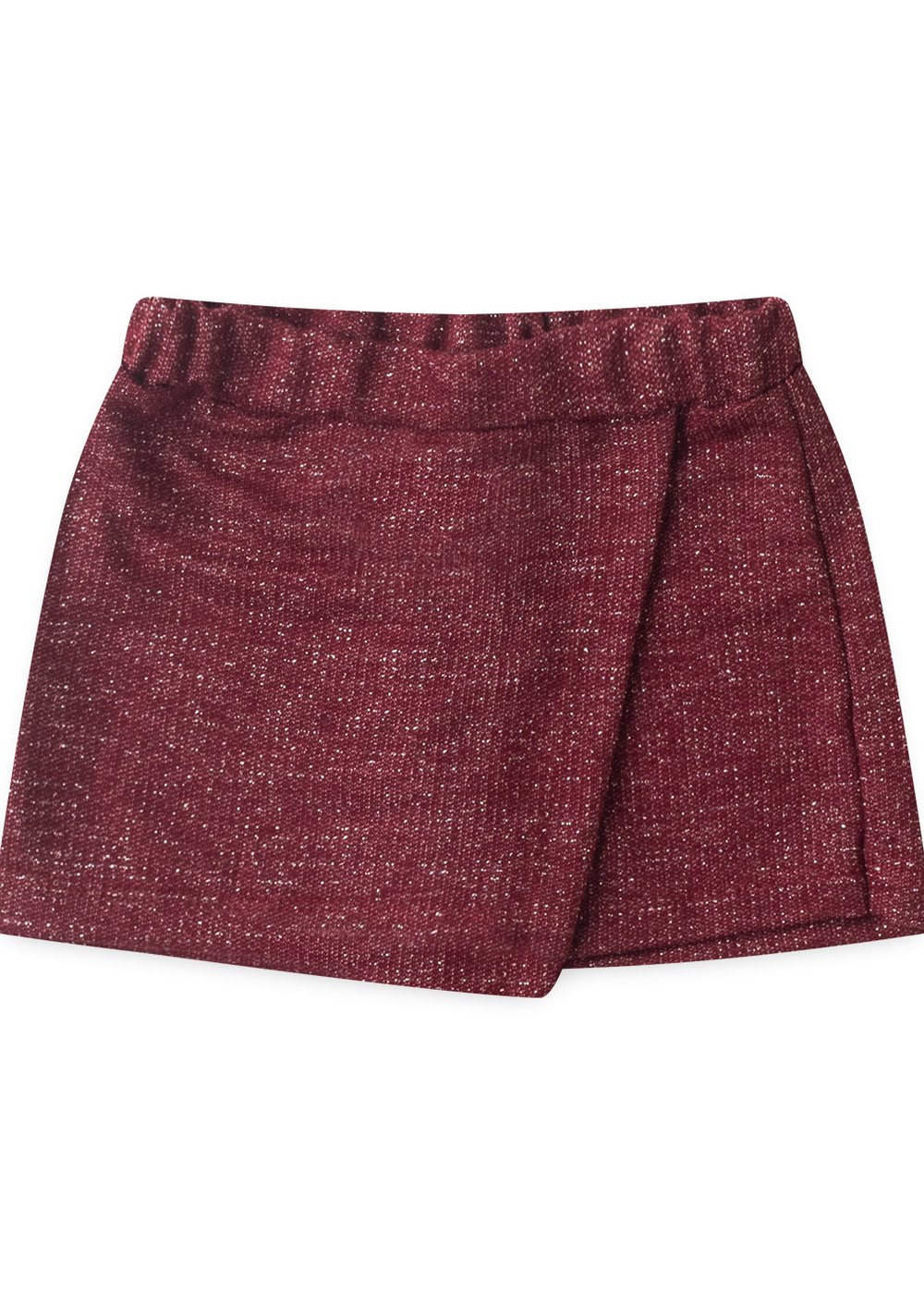 O shorts saia, em moletinho, na cor bordo, elástico na cintura para maior conforto, proporcionando estilo e super combinando com a blusa.