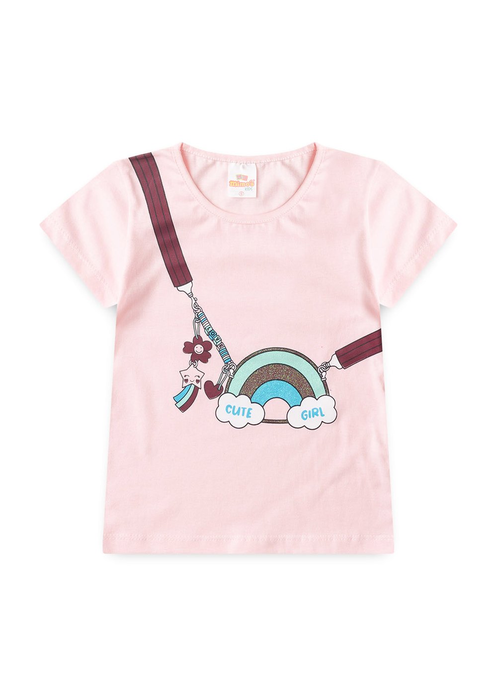 Este conjunto moderno e confortável é perfeito para os dias de verão! A camisa em meia malha, na cor rosa, vem com uma estampa frontal estilosa, gola redonda, garantindo um toque fashion ao look.